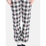 Παντελόνι σε χρώμα ασπρόμαυρο καρό με εντυπωσιακό all over ανεξίτηλο τύπωμα, μπάσκα στο κάτω μέρος και μαλακό λάστιχο.