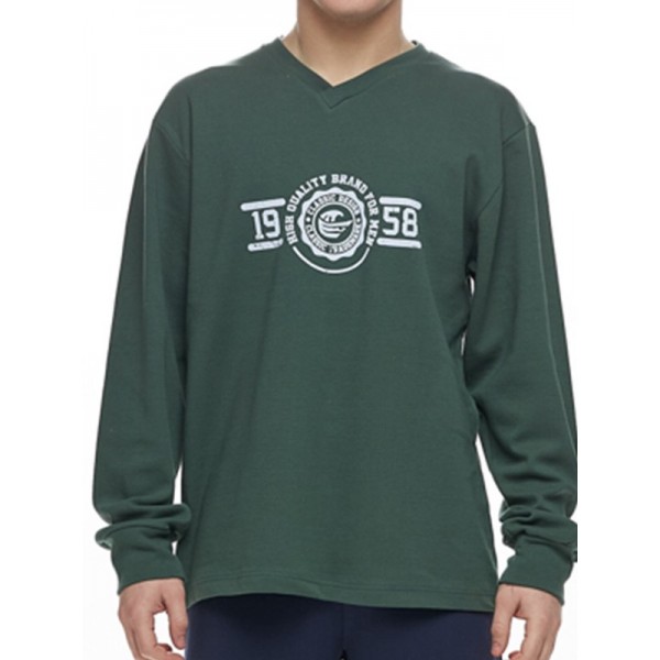 Μπλούζα σε χρώμα χακί με VE λαιμουδιά και μοντέρνο ανεξίτηλο τύπωμα.