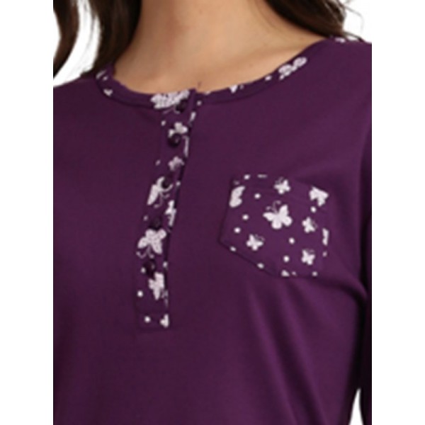 Μπλούζα ίντερλοκ σε μωβ χρώμα με πατιλέτα στη λαιμουδιά για μεγαλύτερη άνεση και μοντέρνα διακριτικά ανεξίτηλα τυπώματα.