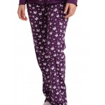 Παντελόνι ίντερλοκ εμπριμέ σε μωβ χρώμα με μαλακό λάστιχο στη μέση και ίσια γραμμή στο πόδι.